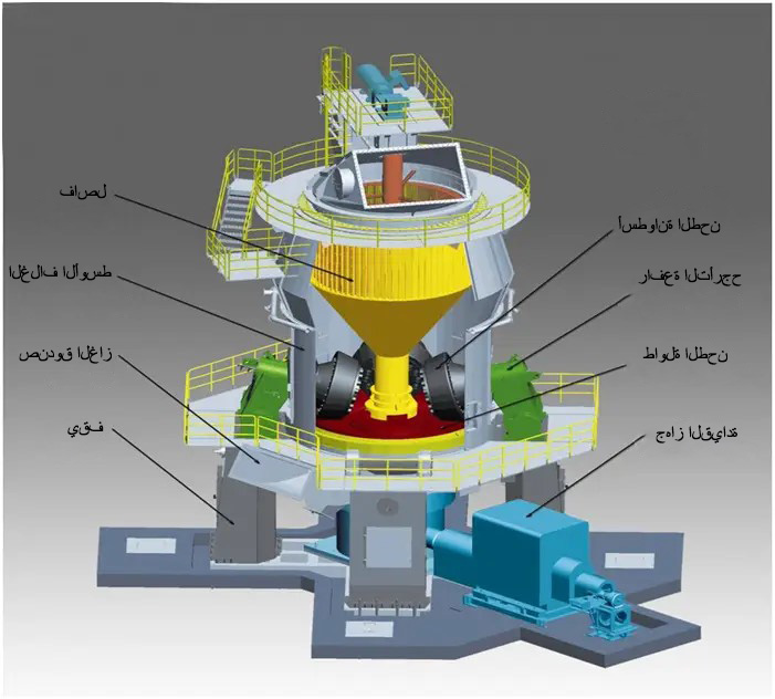مطحنة هونغجي العمودية هي نوع من مطاحن الأسطوانات. يمكن تجهيزها، حسب الطلب، بثلاث أو أربع أسطوانات. تتكون كل أسطوانة من أسطوانة ثابتة، وذراع تثبيت هزاز، ونظام هيدروليكي. وحدة القوة الدافعة إما كاملة أو قطعة قياسية. يمكن ترتيبها في مكونين، أو ثلاثة مكونات، أو أربعة مكونات حول قرص المطحنة.